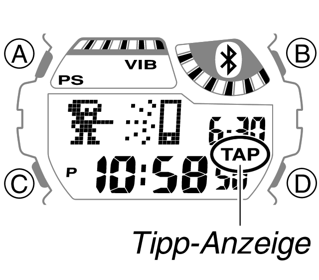 - Halten Sie im Uhrzeitmodus D ungefähr eine Sekunde lang gedrückt.