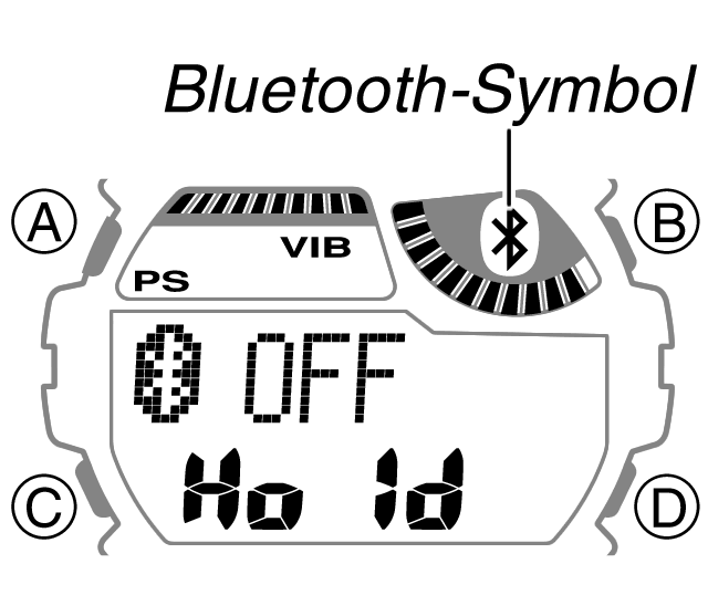 Wenn Sie sich in einem Krankenhaus, Flugzeug oder anderswo befinden, wo die Nutzung von Funksignalen verboten ist, können Sie das Aussenden von Signalen durch Drücken von B im Uhrzeitmodus deaktivieren. Das Bluetooth-Symbol wird dann nicht mehr auf dem Uhren-Display angezeigt.