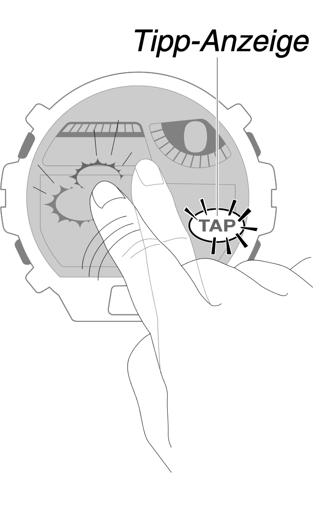 Um die Uhr durch Tippen zu bedienen, tippen Sie leicht mit Ihrer Fingerspitze in die Mitte des Uhren-Displays.
