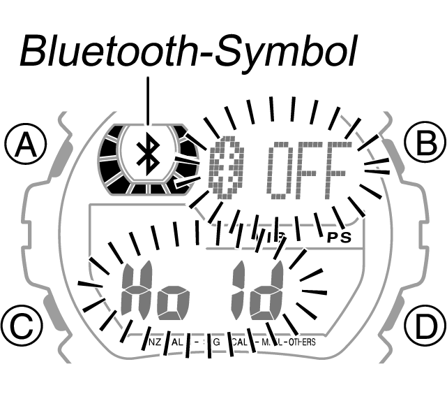 - Halten Sie im Uhrzeitmodus die Taste B ungefähr zwei Sekunden lang gedrückt, bis das Bluetooth-Symbol nicht mehr auf dem Display zu sehen ist.