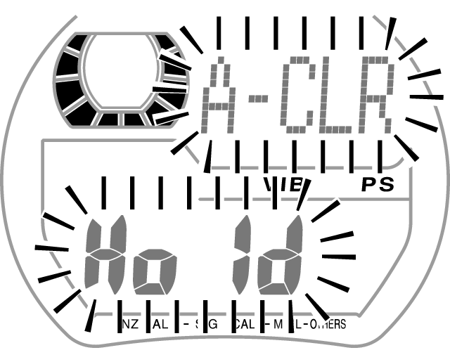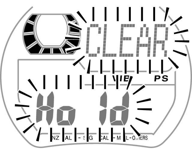 - Halten Sie die Taste B gedrückt, bis das Display der Uhr von "CLEAR" (Löschen) zu "[NEW]" (Neu) wechselt. Lassen Sie B los, sobald "[NEW]" (Neu) angezeigt wird.