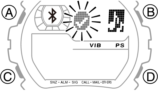 Mit jedem Drücken der Taste B wechseln Sie nacheinander durch die Einstellungen für den Vibrationstyp [A], [B], [C]. Wenn Sie diese Einstellung geändert haben, führt die Uhr eine Demovibration entsprechend Ihren Änderungen aus.b. Animation ein/aus b.