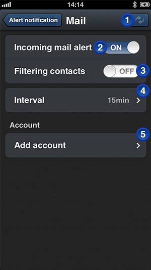 ・ AUS: Kontaktfilter ausgeschaltet (Signal bei allen Mails)4Intervall