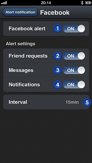 Legt das Intervall zum Abfragen der Facebook-Signale fest.