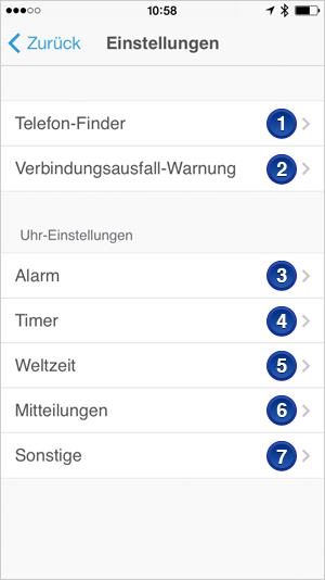 - Tippen, um die sonstigen Einstellungen der Uhr zu konfigurieren.