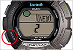 - Halten Sie im Zeitmessermodus die vordere Taste der Uhr etwa zwei Sekunden lang gedrückt, bis das Bluetooth-Symbol nicht mehr im Display angezeigt wird.