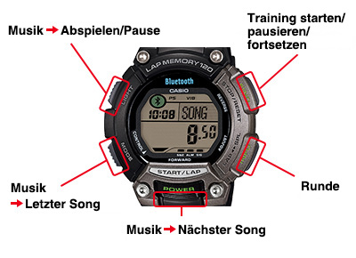 Ein Beispiel zum Konfigurieren der Einstellungen für die App-Steuerung finden Sie unten. Wenn Sie den Uhrentasten häufig verwendete Funktionen zuweisen, macht dies die Bedienung während des Trainings einfacher und effizienter.