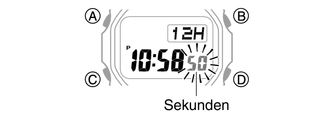3.Halten Sie (B) ca. sieben Sekunden lang gedrückt.