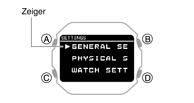 Verwenden Sie (C), um den Zeiger auf [GENERAL SETTINGS] zu bewegen.