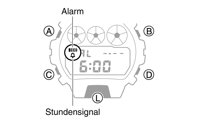 Drücken Sie jeweils auf (D), um den Alarm oder das Stundensignal ein- bzw. auszuschalten.