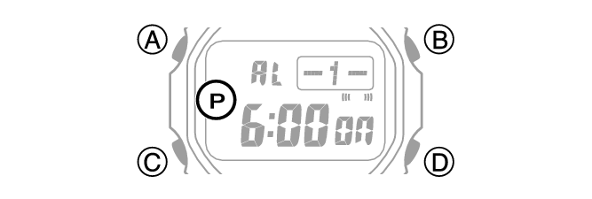 Drücken Sie (A), um den angezeigten Alarm oder das Stundensignal auszuschalten.