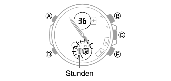 4.Drücken Sie (D), sodass die Minutenanzeige blinkt.