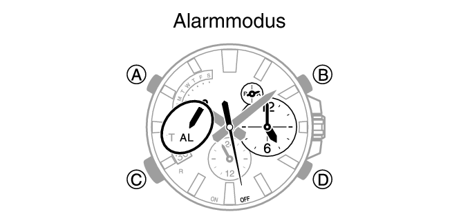 Führen Sie diesen Vorgang im Alarmmodus durch. Verwenden Sie (A), um in den Alarmmodus zu gelangen.