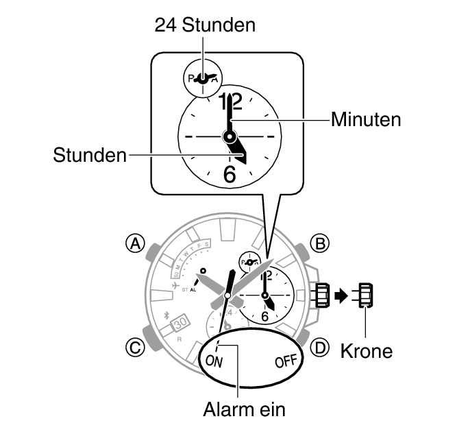 2.Drehen Sie die Krone, um die Alarmzeit zu ändern.