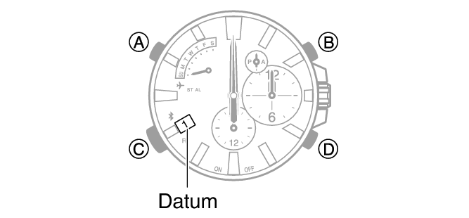 7.Drehen Sie die Krone, um den Stunden- und Minutenzeiger an der 12-Uhr-Position auszurichten.