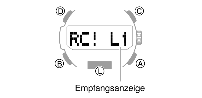Dies deutet darauf hin, dass der Empfangsvorgang begonnen hat. Nachdem der Empfangsvorgang abgeschlossen ist, werden die Zeit- und Datumseinstellungen der Uhr automatisch angepasst.