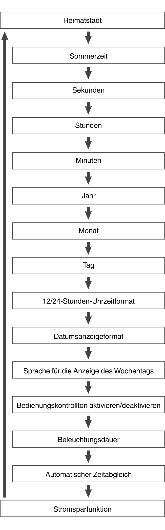Während die Einstellung konfiguriert wird, verlässt die Uhr den Einstellungsbildschirm automatisch nach etwa zwei oder drei Minuten ohne Eingabe.