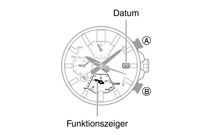 Bewegung des Funktionszeigers und der Datumsanzeige