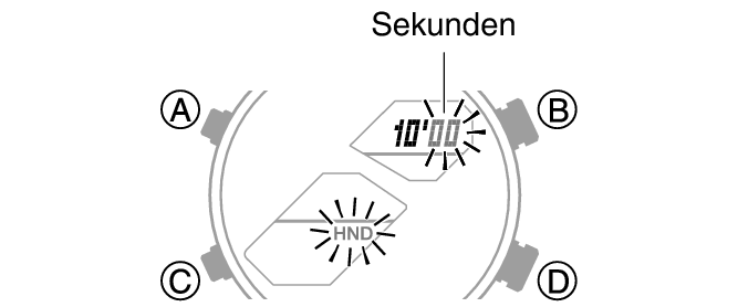 Verwenden Sie (B) und (D) zum Ändern der Sekundeneinstellung.