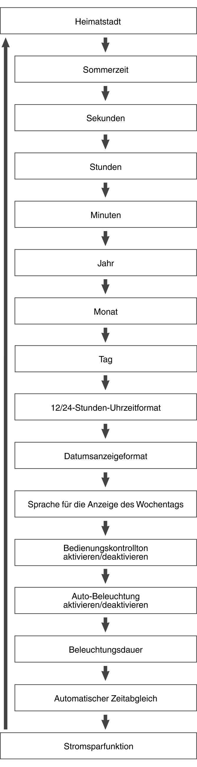 Während die Einstellung konfiguriert wird, verlässt die Uhr den Einstellungsbildschirm automatisch nach etwa zwei oder drei Minuten ohne Eingabe.