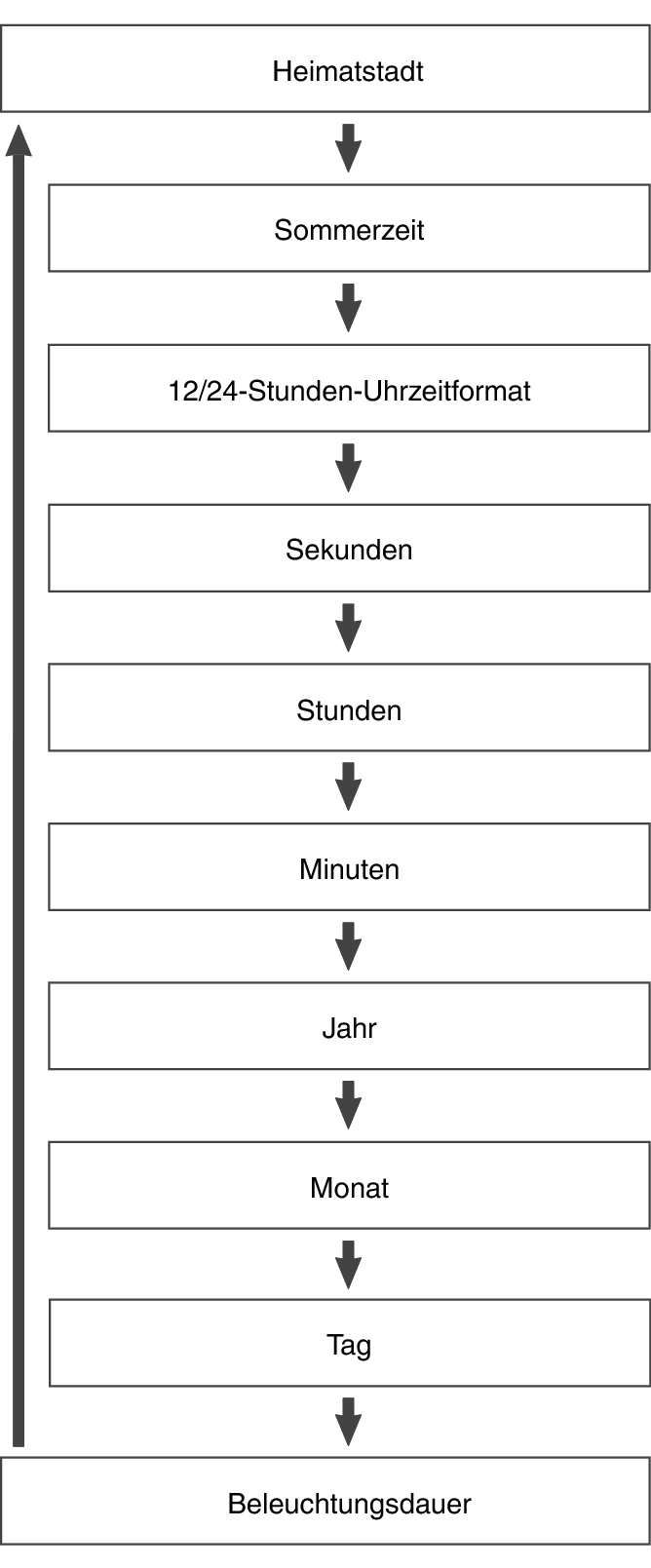 Gehen Sie wie unten beschrieben vor, um die aktuellen Datums- und Uhrzeiteinstellungen anzupassen und eine Heimatstadt zu wählen.
