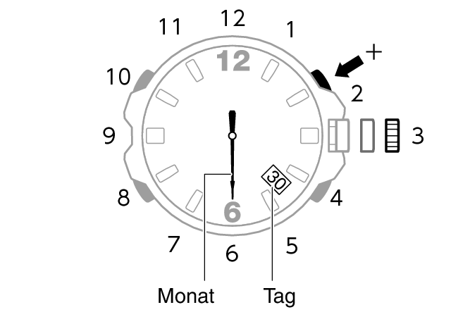 Ziehen Sie die Krone bis zum zweiten Klicken heraus.