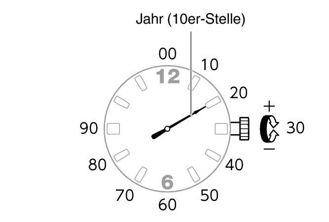 Drehen Sie die Krone, um die 10er-Stelle des Jahres einzustellen.