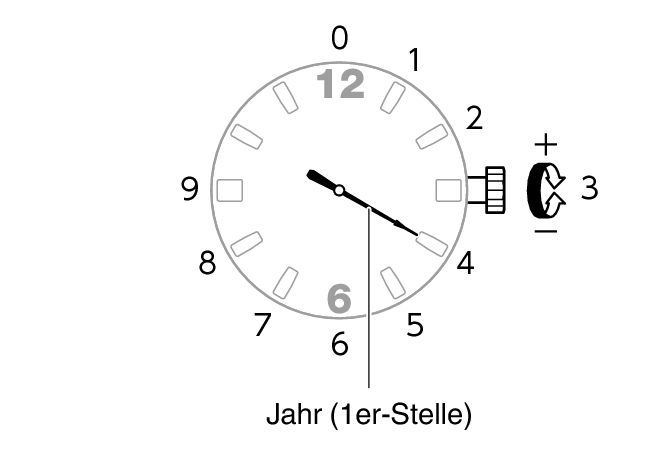 Drehen Sie die Krone, um die Einerstelle des Jahres einzustellen.