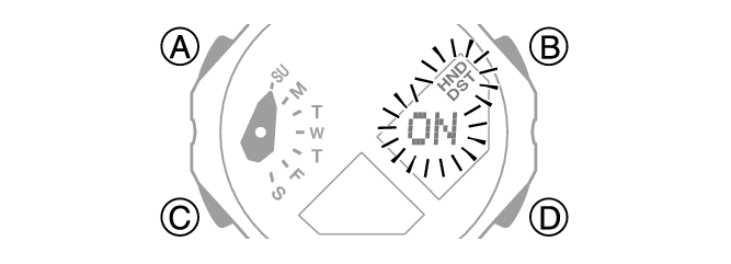 Drücken Sie (B) oder (D) zur Änderung der Sommerzeiteinstellung.