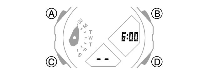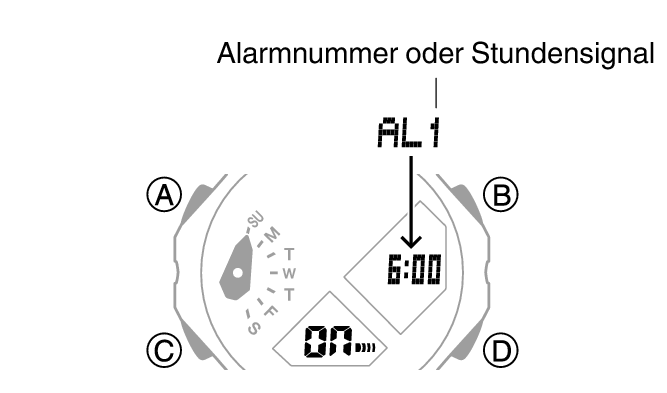 Drücken Sie (A), um den angezeigten Alarm oder das Stundensignal auszuschalten.