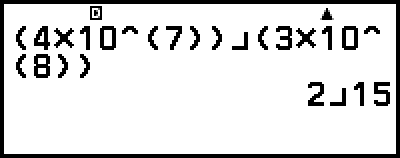 (Power), Input/Output: MathI/MathO), executing 4 × 107 ÷ 3 × 108 causes the calculation to be performed sequentially from left to right, which produces a different calculation result than the one in the above example (using fractions). To obtain the same calculation result, each term needs to be enclosed in parentheses: (4 × 107) ÷ (3 × 108).