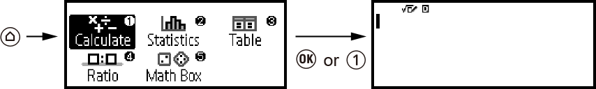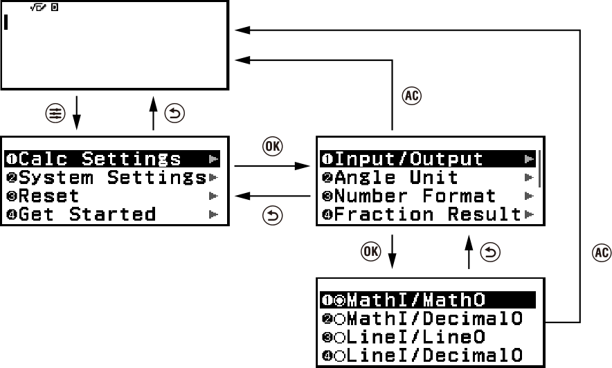 Many of the operations of your calculator are performed using menu screens. The example below shows operations starting from the menu screen that appears when you press