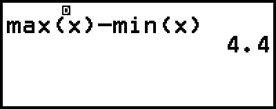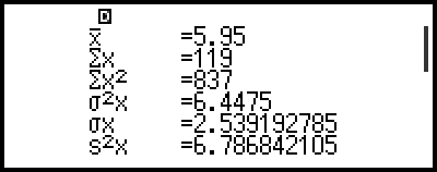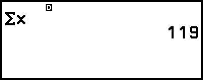 To recall a statistical value, use a variable representing the statistical value you want to recall (for example, x mean: x, x population standard deviation: σx, x maximum value: max(x), and so on). For more information about these variables, see the "List of Statistical Value Variables and Statistical Calculation Functions".
