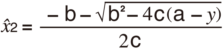 Based on the regression equation obtained by paired-variable statistical calculation, the estimated value of y can be calculated for a given x-value. The corresponding x-value (two values, x1 and x2, in the case of quadratic regression) also can be calculated for a value of y in the regression equation.