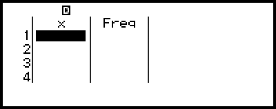 When the Frequency setting on the TOOLS menu is turned on, a column labeled "Freq" will be included on the Statistics Editor. You can use the Freq column to specify the frequency (the number of times the same sample appears in the data group) of each sample value.