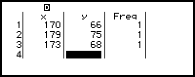 Example 1: To select paired-variable and input the following data: (170, 66), (179, 75), (173, 68)