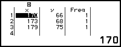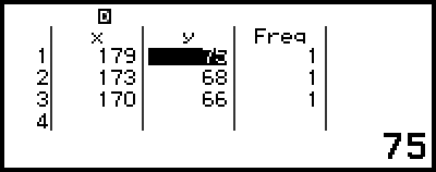 On the Statistics Editor, you can store the value in a cell to a variable. For example, performing the following operation while the screen in step 3 is displayed above will store 68 to variable A: