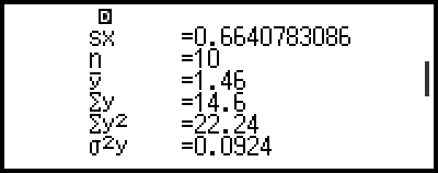 Select [1-Var Results], [2-Var Results], or [Reg Results] to see a list of calculation results based on the data you entered. For details, see "Displaying Statistical Calculation Results".