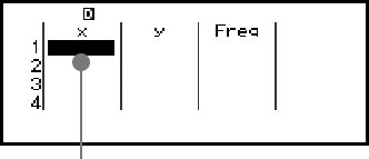 Data you input is inserted into the cell where the cursor is located. Use the cursor keys to move the cursor between cells.