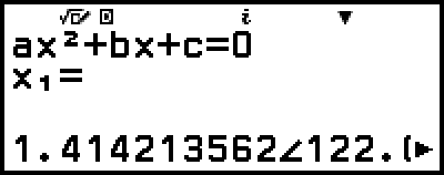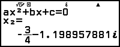 (Input/Output: MathI/MathO, Complex Result: a+bi, Complex Roots: On)