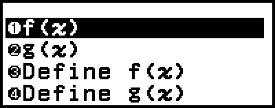 while the g(x) equation registration screen is displayed, the only menu item that appears is [f(x)]. In the same way, pressing