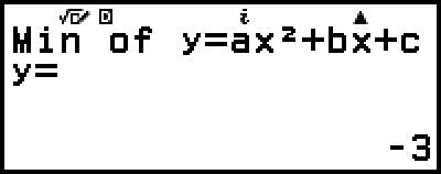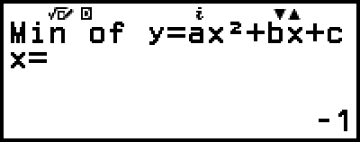 Following the display of the solution of ax2+bx+c=0, the minimum (or maximum) coordinates (x, y) for y=ax2+bx+c are displayed.