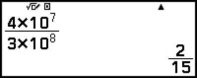 (Power), Input/Output: MathI/MathO), executing 4 × 107 ÷ 3 × 108 causes the calculation to be performed sequentially from left to right, which produces a different calculation result than the one in the above example (using fractions). To obtain the same calculation result, each term needs to be enclosed in parentheses: (4 × 107) ÷ (3 × 108).