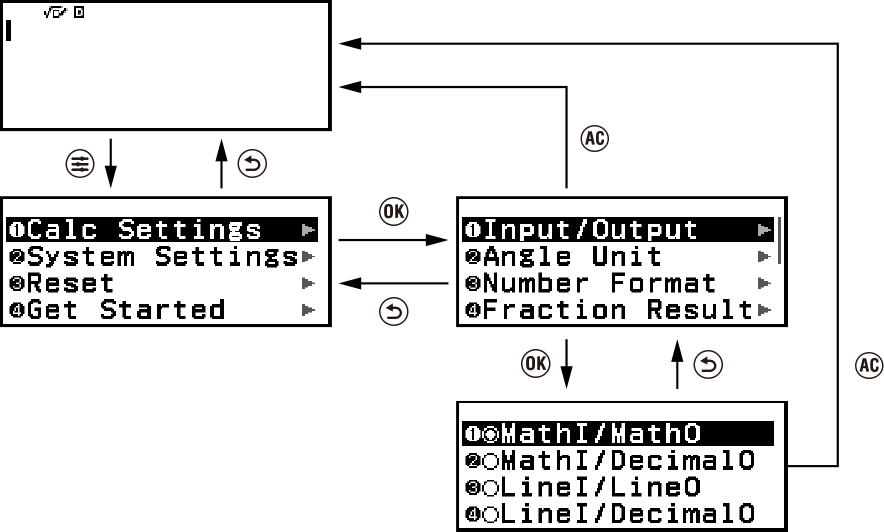 Many of the operations of your calculator are performed using menu screens. The example below shows operations starting from the menu screen that appears when you press