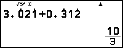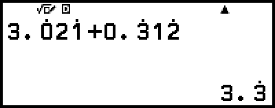 – [Numeric Calc] > [Recurring Decimal]For the actual operation, see "Recurring Decimal Calculation Example".