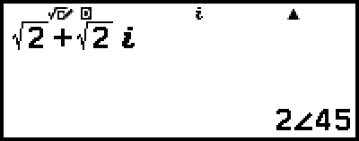 Display of the calculation result while something other than MathI/MathO is selected will show a and bi (or r and θ) on separate lines.