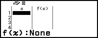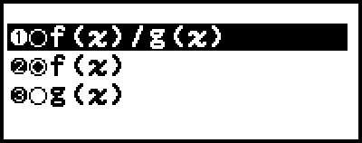 If a defining equation is not registered for either or both of f(x) and g(x) and the data at the cursor selection position is empty, a message will appear at the bottom of the screen indicating that the defining equation is not registered.
