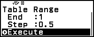 is pressed while [Execute] is selected on the Table Range screen.