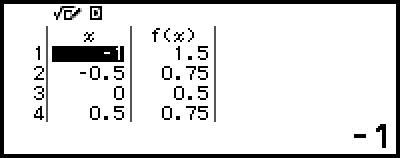 On the number table screen, you can store the value in a cell to a variable. For example, performing the following operation while the screen in step 6 is displayed above will store -1 to variable A: