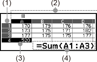 The Grab command can be used in place of manual reference name (such as A1) input using a key operation to select and input a cell you want to reference.